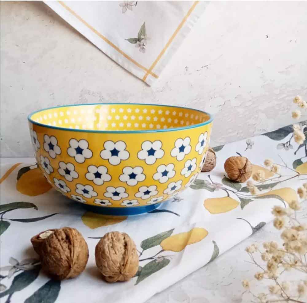 کاسه سالاد طرحدار رنگی زرد(7789)