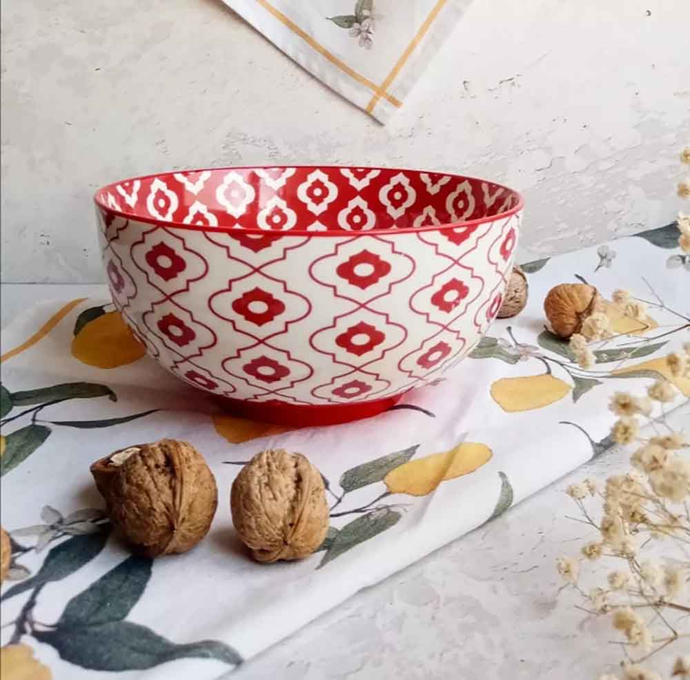 کاسه طرحدار رنگی سالاد قرمز (3345)